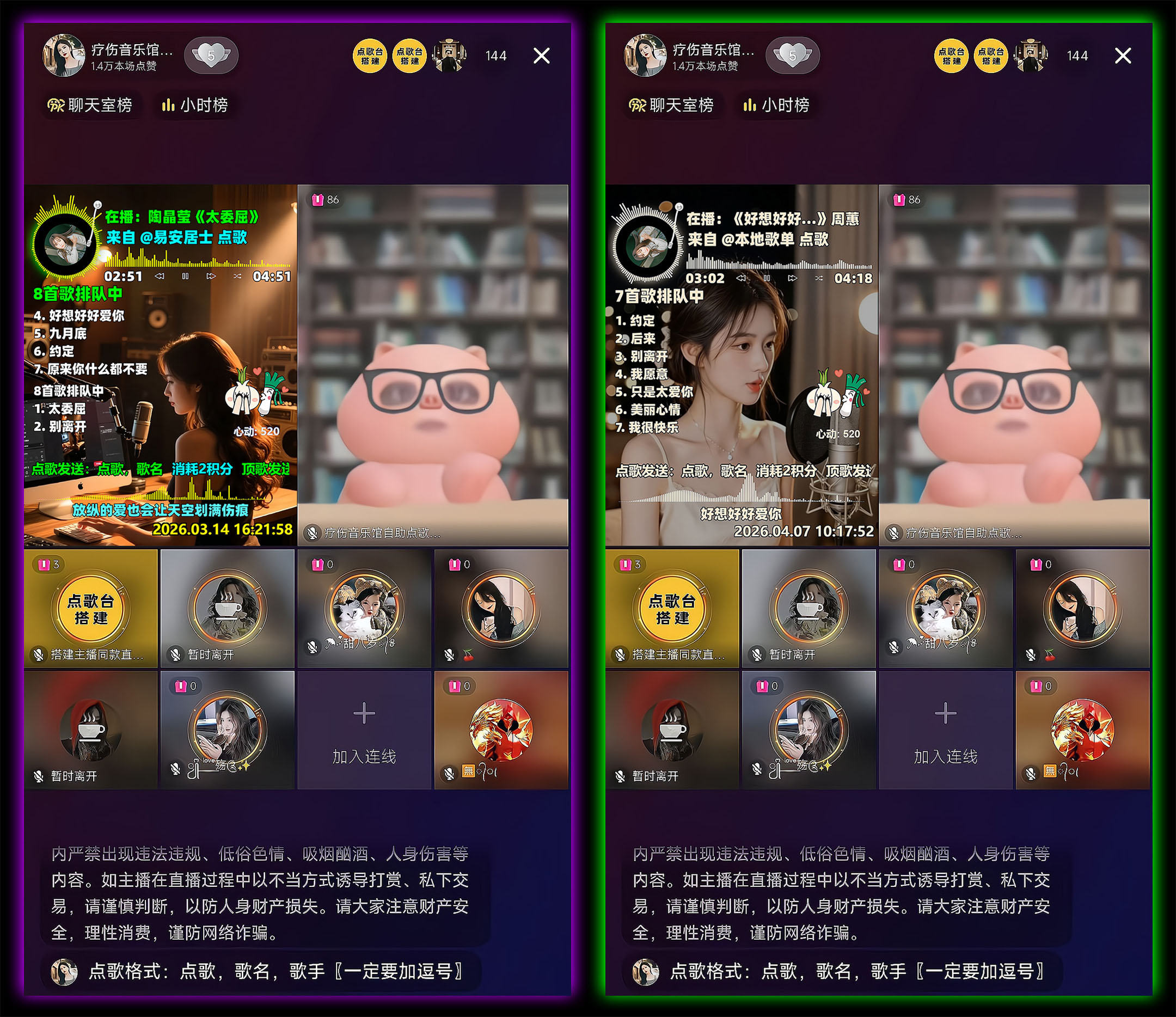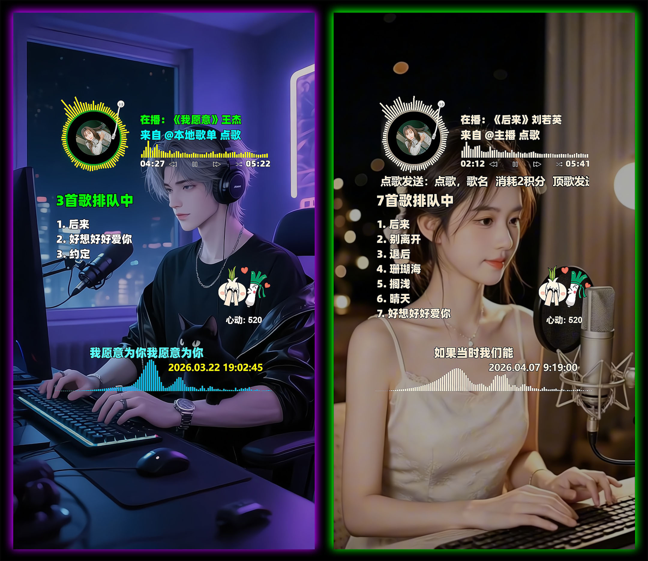 支持功能:支持礼物或者积分点歌、置顶、切歌、续听、删歌、超级切歌,支持语音播报、文字弹幕播报,支持冷场讲解、礼物感谢、关注感谢、点赞感谢、直播间进人欢迎、关键词自动回复,支持deepseek、阿里云、腾讯云等多个大语言模型智能回复,支持普通用户组、粉丝团用户组、VIP用户组、管理员用户组独立自定义积分,支持横版、竖版、七宫格、九宫格、十宫格模板布局,支持阿里云、腾讯云、百度云三大语音接口,支持几百种男生女生普通话及方言发音模型,支持刷任何礼物召唤火箭、嘉年华、天空之城、宇宙之星、璀璨花海、秘境巡游、十里桃花等绝版震撼唯美特效、支持木鱼计数、音播特效、头像飘屏、贵宾席位